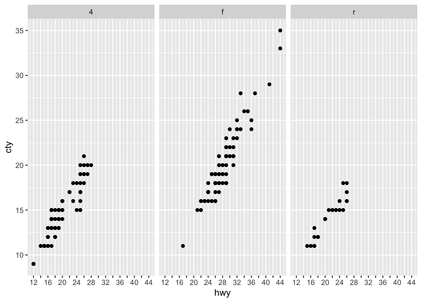 In this example, using scale limits (on the left) leads to displaying spurious information about where the min and max of the data are. When this issue comes up, the response is usually that the user should use coord_cartesian(ylim = ...) (as shown on the right) instead of scale_y_continuous(limits = ...). Scale limits have this awesome feature where you can pass NA as one or more of the limits to refer to the minimum or maximum of the data, but this previously wasn’t possible for coordinate system limits. Now it is! It’s particularly useful with facets where scales = "free":