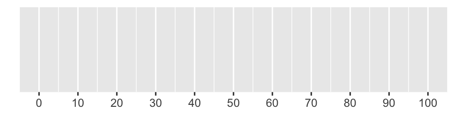 breaks_width()allows you to specify the distance between breaks rather than the number of them.1 2demo_continuous(c(0, 100), breaks = breaks_width(10)) #> scale_x_continuous(breaks = breaks_width(10))