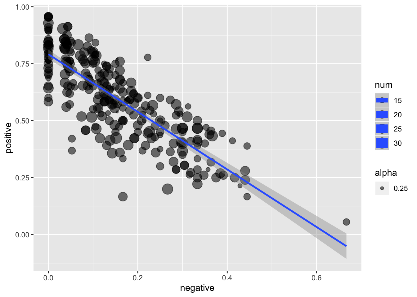 - The regression line is created using the ’lm’ method.