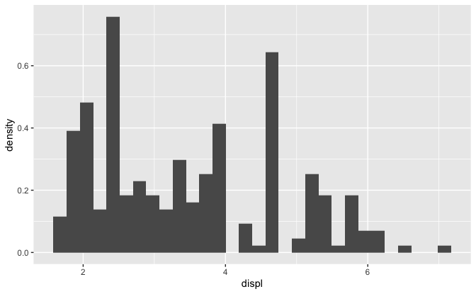 You would use after_stat() to e.g. pick a different computed metric than the default (here density instead of count)