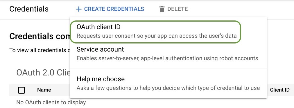 Step 5: Create and download your project’s OAUTH credentials from Google