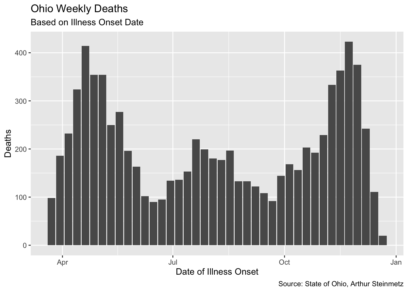 x = "Illness Onset Date", y = "Ohio Fatality Rate",