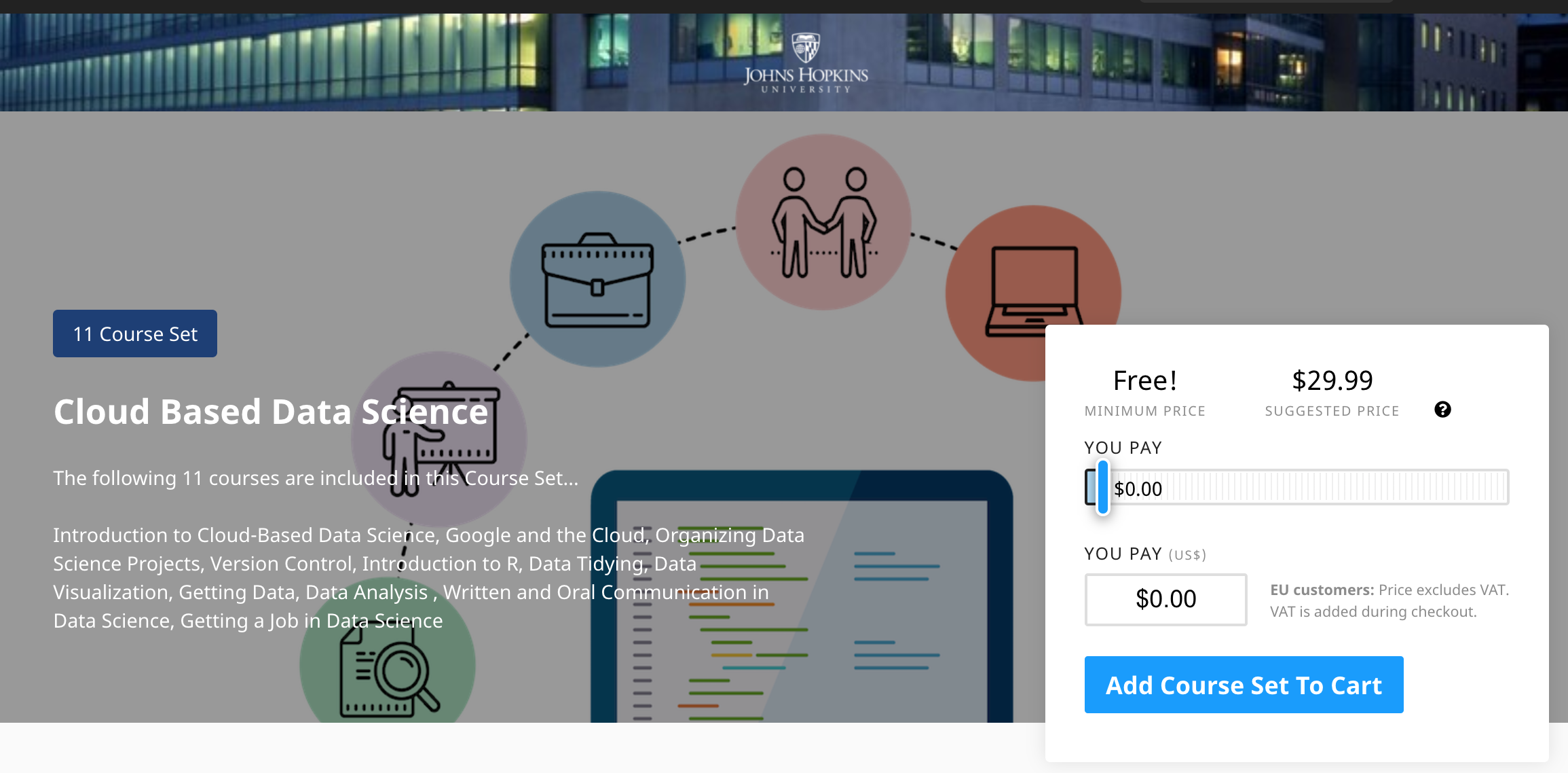 Anyway, before I started at UC San Diego, I was in Baltimore at Johns Hopkins Bloomberg School of Public Health working with the Leek Group and a team of incredible people to make Cloud-Based Data Science (CBDS) a thing. You see, we had this dream of getting people who typically had limited to no access to data science education an education in data science for free, in a short period of time, and without any requirements for previous programming or advanced math training.