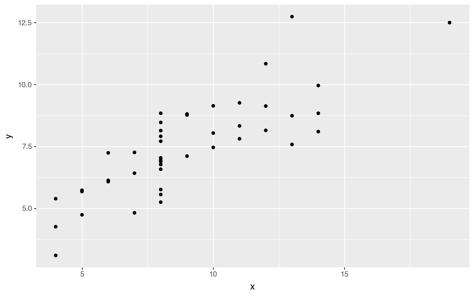 We have two continuous variables x and y, so a scatter plot might work: