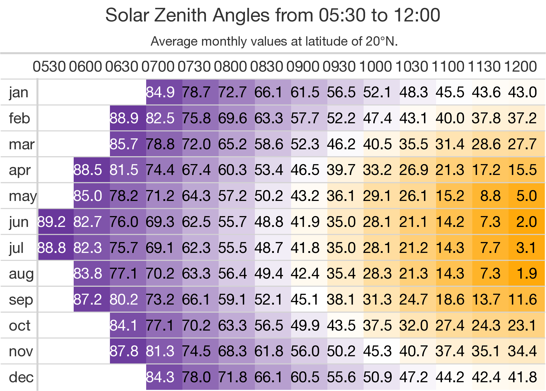 Solar Zenith (Great Tables / Python)#