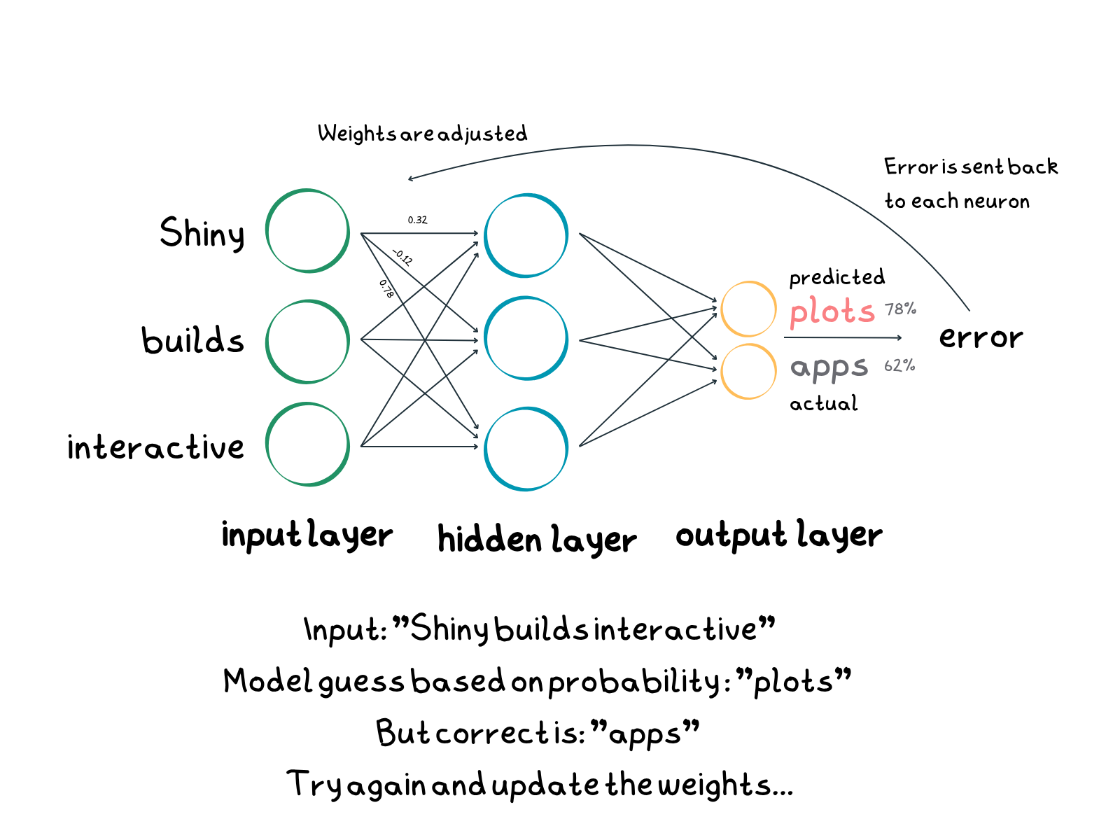 Each connection between layers has a weight, aka a number that determines how strongly one “neuron” influences another. During training, the model adjusts these weights millions (or billions) of times to reduce the gap between its predictions and the actual data. This process is called back propagation, and it’s basically a giant optimisation loop: the model makes a guess, sees how wrong it was, tweaks the weights, and tries again. Over time, it gets surprisingly good at spotting patterns in language.